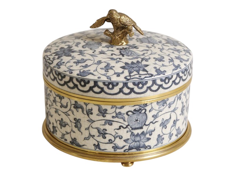 Covered jar with a blue lid.