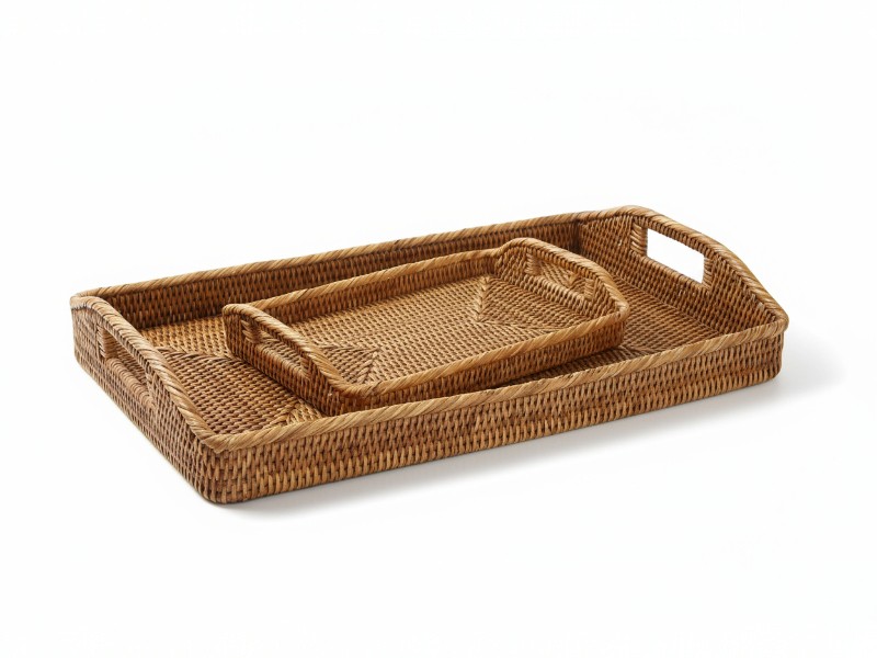 Nested Rattan Tray Duo. The Contemporary Rattan Weave Collection reflects timeless craftsmanship with modern simplicity — handwoven with precision to bring warmth and texture into everyday living.