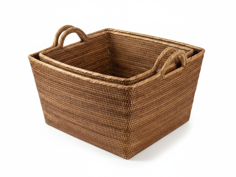 Harvest Basket with handles. The Contemporary Rattan Weave Collection reflects timeless craftsmanship with modern simplicity — handwoven with precision to bring warmth and texture into everyday living.