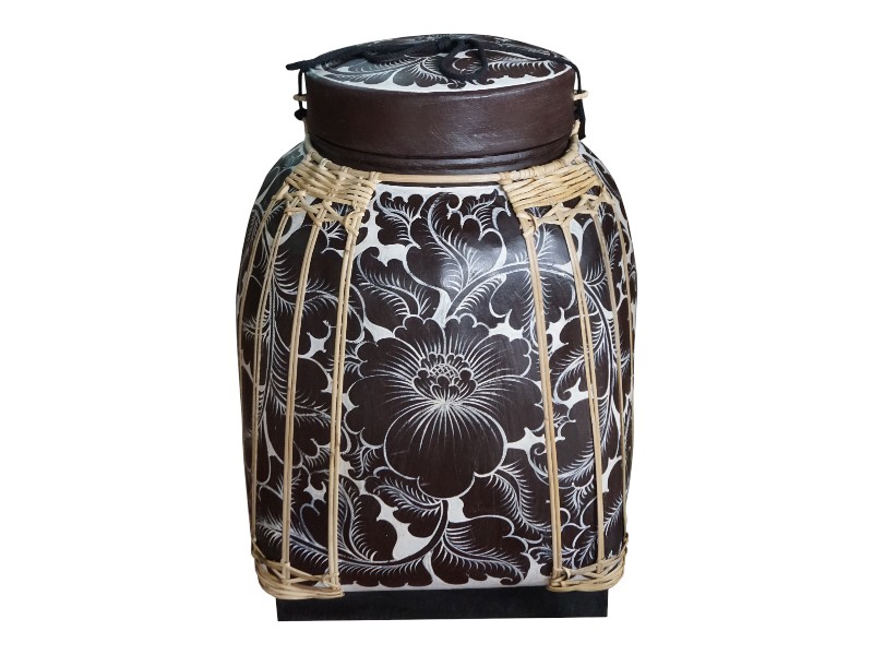 Shadow Vine Jar (Antique Black) Antique finish with gold vine motif, reflecting timeless beauty. The “Lanna Thai Rice Basket Collection” revives the timeless elegance of Northern Thai artistry. Each piece is handcrafted from bamboo and wood, adorned with hand-painted Lanna motifs in gold leaf and lacquer, symbolising prosperity, grace, and the beauty of Thai heritage reborn for modern living.